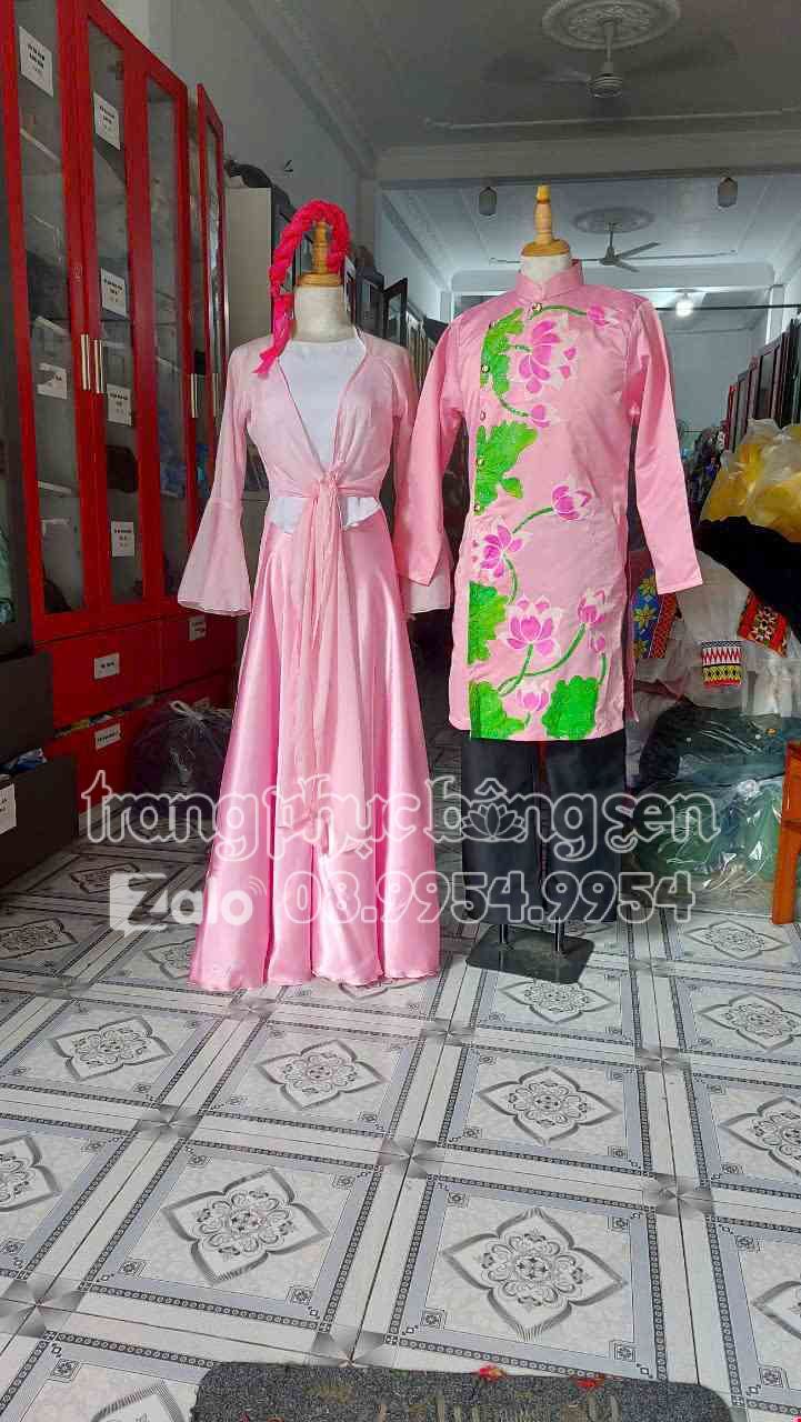 Trang Phục Bông Sen đã đưa thêm một phần quyến rũ và phần nghệ thuật vào trang phục tứ thân truyền thống. Với chất liệu vải lụa mềm mại, màu lụa hồng phấn ngọt ngào và yếm sen tươi tắn , chiếc áo tứ thân này trở thành một sự lựa chọn đẳng cấp cho các tiết mục biểu diễn văn nghệ. Khi bạn thuê tại Trang Phục Bông Sen, bạn không chỉ mặc một chiếc áo đẹp mắt mà còn cảm nhận được sự nâng tầm và quyến rũ trong mỗi bước biểu diễn.