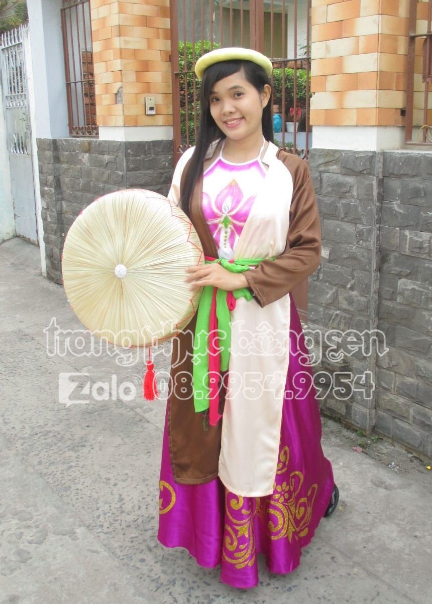 Tứ thân vải phi bóng màu nâu – kem