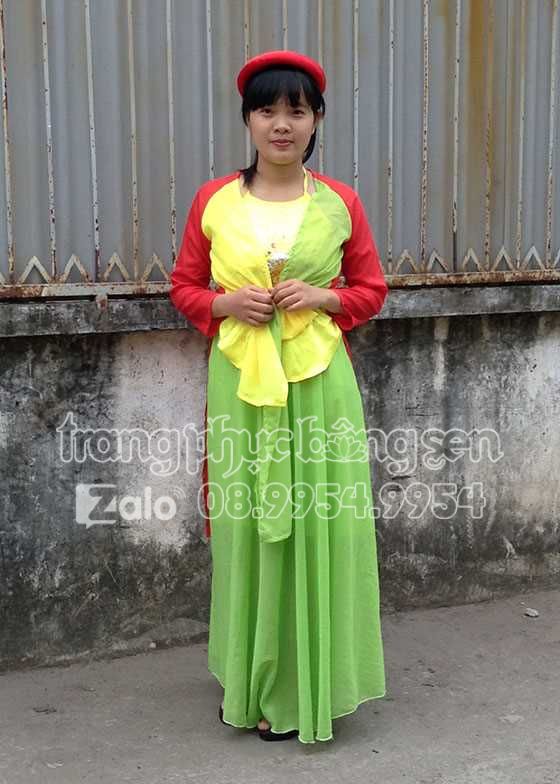 Tứ thân vải voan màu xanh chuối – vàng