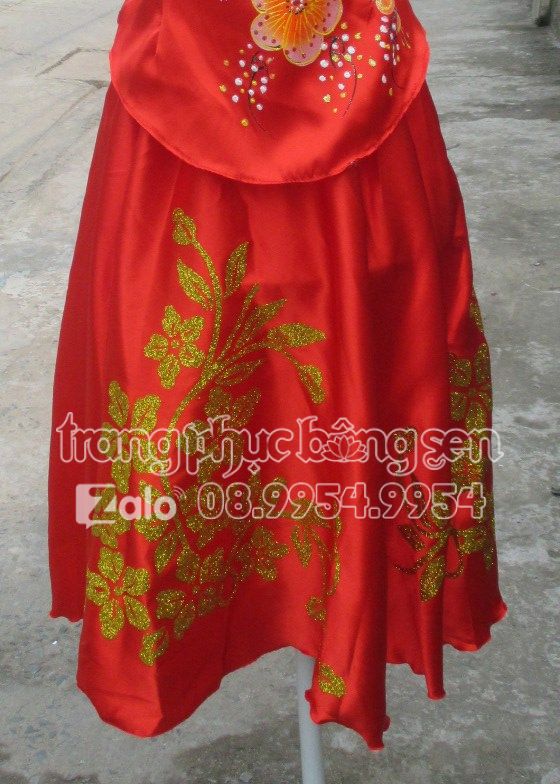 Váy đụp ngắn phun kim tuyến màu đỏ