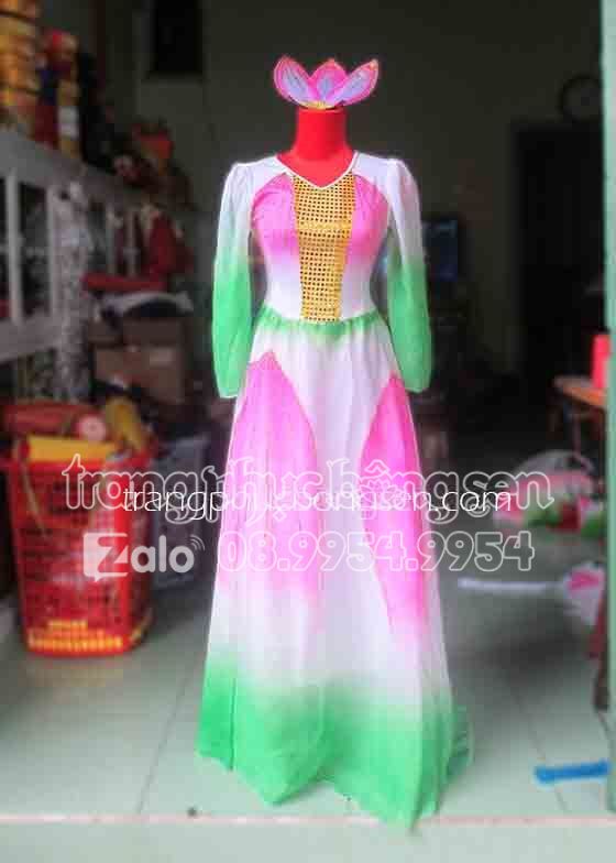 Váy múa sen cổ thuyền phối kim sa tay dài