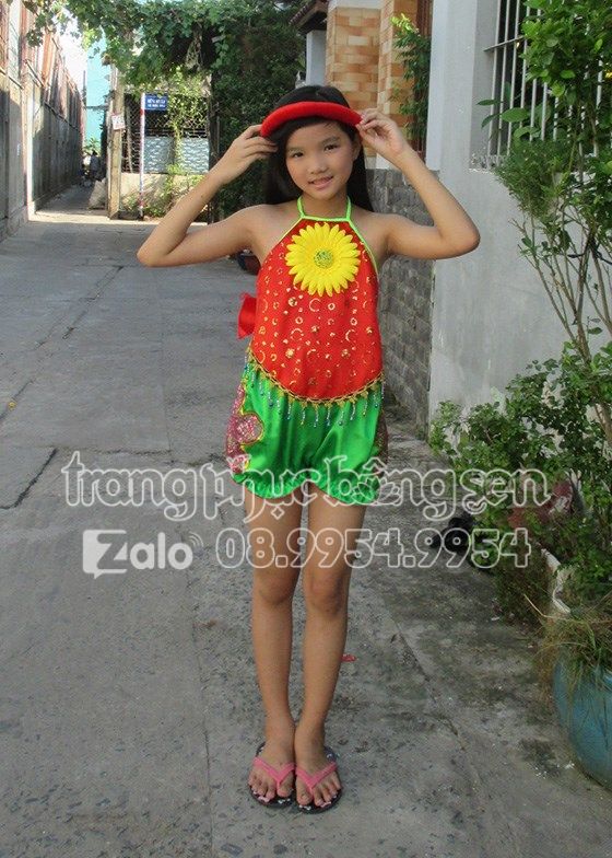 Yếm kim sa đỏ, quần bí ngắn xanh lá