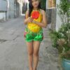 Yếm kim sa kim sa trẻ em màu đỏ, quần bí xanh lá