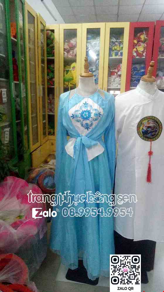 Áo tứ thân vẽ mầm non hồng, đụp xanh lá