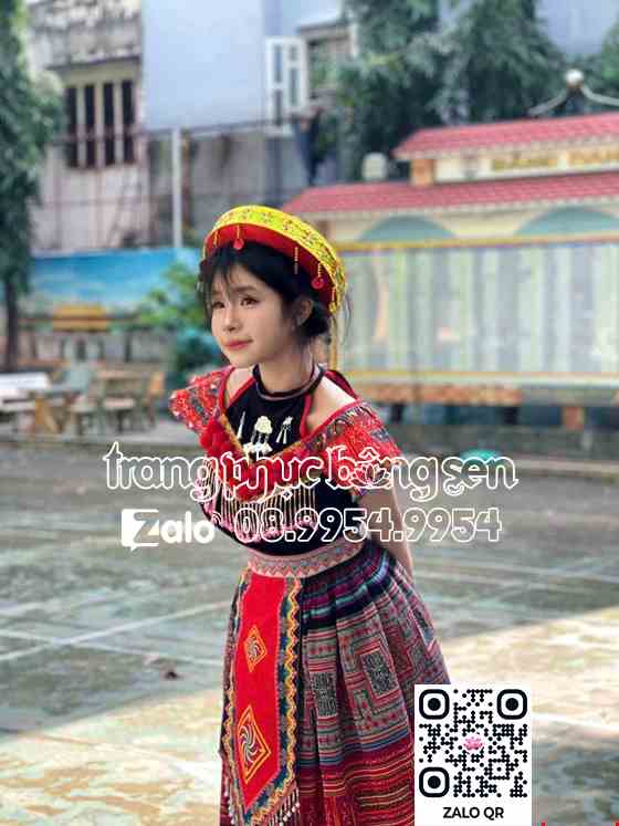 Trang phục biểu diễn 54 dân tộc (lẻ): H'Mông/Mèo áo đỏ cổ tim nhỏ